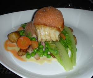 A fine, juicy fillet of West coast halibut arrives with a topknot of carrot foam like one of Kate Middleton’s hats. Wilted lettuce, petits pois and fingerlings lie beneath but anyone who orders this thinking it’s a lightweight option has been deceived. Diced smoked Berkshire bacon and an unctuous beurre blanc take it deep into the land of the rich and famous.