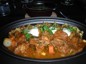 It’s been a while since I last saw “stew” on a menu but Brodi offers a good one, as down-home as anything in the city with exceptionally tender pieces of St. Canut piglet braised in a rich tomato-paprika gravy with fragrant little turnips, potatoes and baby white onions. Admirably light quark spätzle share the plate while dollops of sour cream and a separate cast-iron ramekin of sweet-tangy braised red cabbage adds the Magyar grace notes. Henry of Pelham Baco Noir Reserve is a suitably forthright, rustic match.