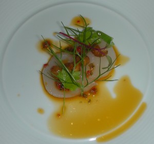 Then comes an area devoted to crudi. When we failed to order any of those dishes the kitchen turned one into an amuse bouche – gorgeous slivers of sweetly gummy raw Hokkaido scallop topped with crispy chickpeas and bathed in a rosemary vinaigrette.