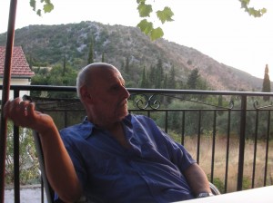 So we went up to Philip’s bar the other night for the much-anticipated mezethes. I should begin by explaining that Philip has owned and run the kafeneion for as long as we have been coming to Loutses – 33 years. Back in the ’70s, it was one of several places to find a drink in the village – a long, crowded room that was as much a community centre as a pub, with a wood stove in the winter and peanut shells on the floor. It also boasted the only telephone in Loutses and we would wait our turn to step into the private closet to call home. Sometimes it took half an hour to get through to England or Canada; sometimes it didn’t work at all. Philip befriended us and we befriended him; he stood as godfather at our son’s christening, to the astonishment of the local priest who hadn’t seen Philip in his church for decades. In doing so, he became our koubaros and we became koubaros and koubara (surely the same root word as the Neapolitan “gumba”) to his entire family.
