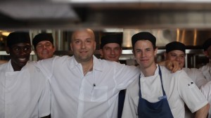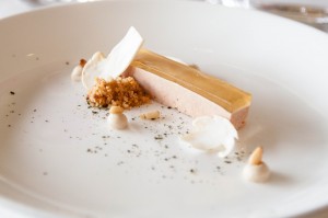 The rules of the day were simple. We would visit the restaurant of each of the eight competitors (they were told when to expect us) where we would be given the competition dish and its accompanying beverage. The surroundings of the plate were irrelevent and the restaurant was not to offer us anything else. Then we would move on to the next location. Like a plane journey or train ride, the day offered all of us a measure of magical irresponsiblity – an enforced holiday – and we fully expected to eat very well indeed. What surprised the judges was how completely different all eight dishes were from each other! There have been years at GMP events where a number of chefs have chosen to work with the same protein or where the logistics of cooking for 750 have imposed a certain uniformity of style: not yesterday. Each dish was utterly distinct and delicious. We finally returned to the hotel at around 7:30 p.m. for Champagne and dessert and the crunching of the judges’ numbers. In the end, the gold medal was unanimously given, though only six percentage points separated the gold, silver, bronze and fourth-placed competitors. Here’s what we tasted.