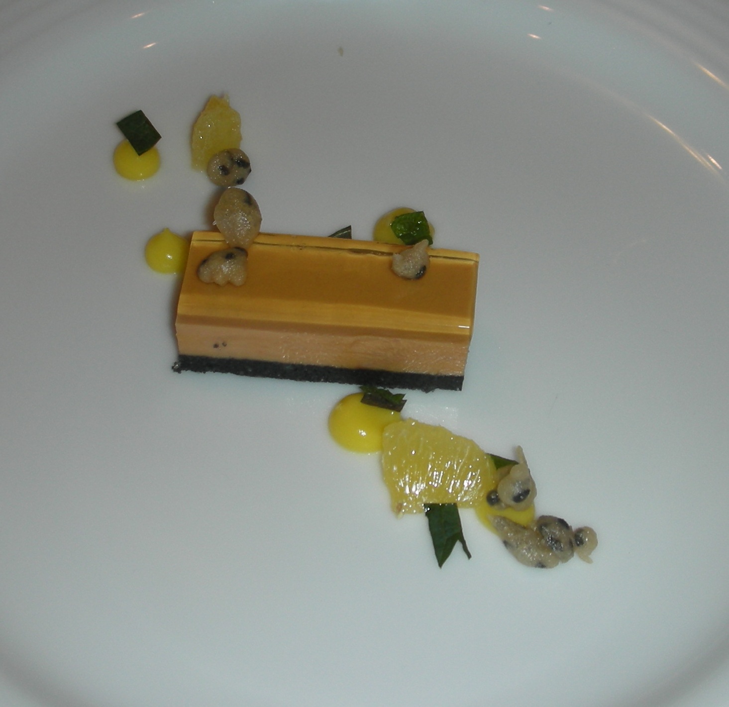 Mark Filatow worked with the charcoal-grilled loins of lambs from local farm, Bar ‘M’ Ranch, keeping the meat pink and juicy. Close by on the plate was a thick chunk of soft, juicy merguez sausage made from the lamb’s shoulder and the neck meat cooked sous vide in chef’s chosen wine. The third component was a dainty lozenge of lamb belly braised with a subtle touch of Moroccan spices. We had a piece of roasted thumbelina carrot and a tiny “doughnut” of deep-fried mashed potato the size of Cleopatra’s pearl and a little fennel relish to cut the richness. No sauce was needed, the meats being so moist and intricately spiced but moisture came from stripes of carrot puréed with yoghurt and honey. Chef’s wine was another remarkably accurate match – the 2010 Syrah from Orofino’s Scout vineyard in B.C.’s Similkameen Valley.