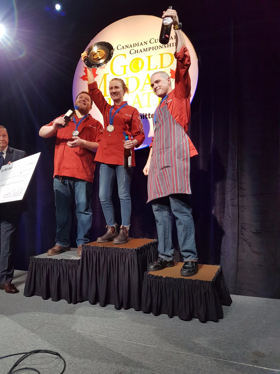 This year, the gold-medal-winning chef in St. John’s was gifted with a couple of extra prizes. Like the gold medallists in all our cities, Chef Wigman won a week’s stay for four people in the Vineyard Villa of Gold Medal Plate’s Italian home-from-home, Borgo San Felice in Tuscany. As well, she was handed a cheque for $5,000, a bursary donated by an anonymous local benefactor to help defer the costs of getting off the Rock and away to far Kelowna for the Canadian Culinary Championships. This prize will be awarded every year and we have named it after our revered Senior Judge Emeritus for St. John’s, Karl Wells, who came up on stage to do the honours.