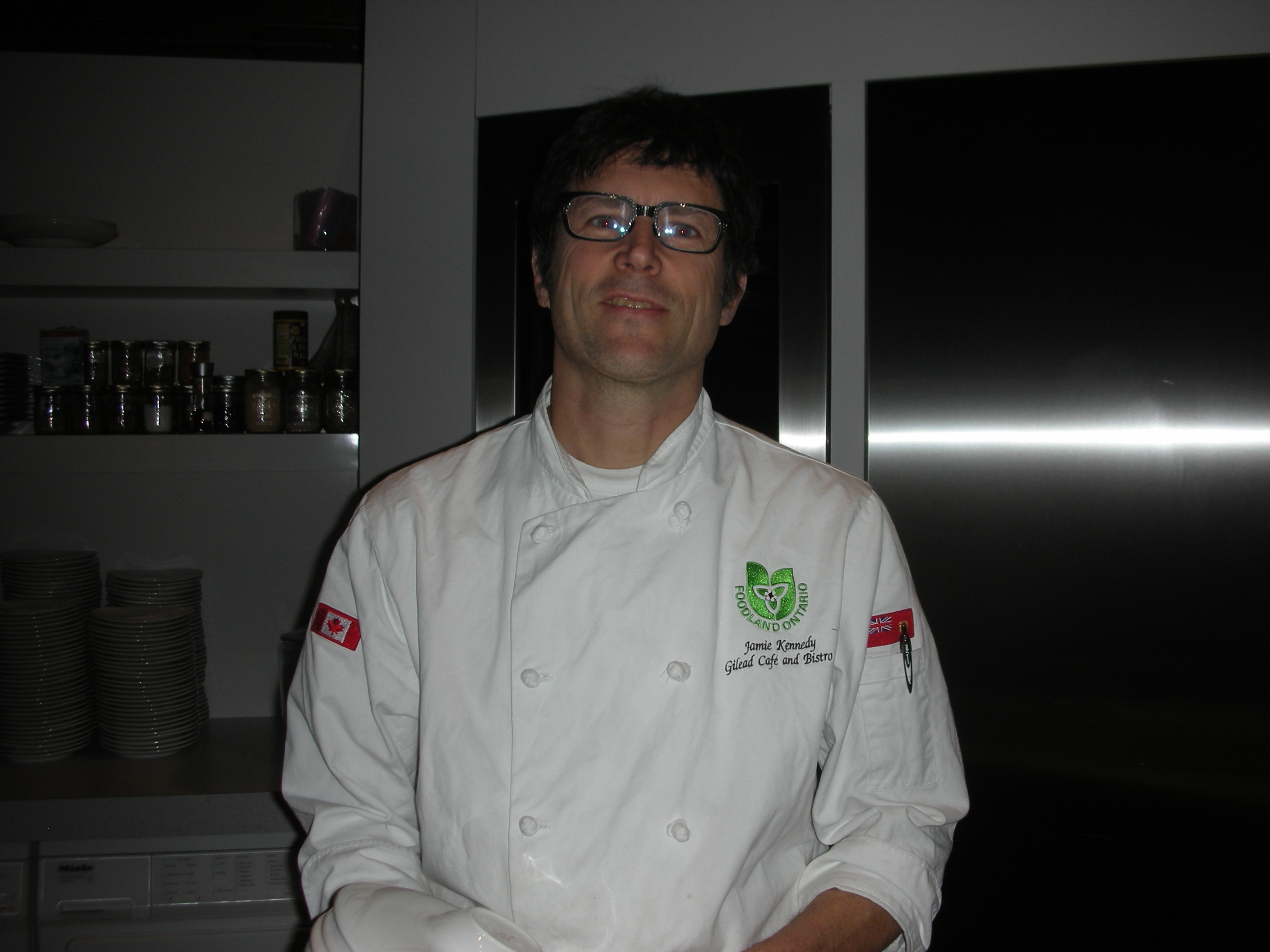 Chef Kennedy’s first course was a miniature bowl of jerusalem artichoke soup (so simple – just a purée of jerusalem artichokes, onion and chicken stock) with a j-choke crisp on top and a tiny drizzle of bright green parsley oil and bright red pepper oil. With that, we poured JK Chardonnay, a wine Jamie helped create at Rosehall Run winery in Prince Edward County, close to his farm. Rosehall’s winemaker was interested to bring a chef’s sensibilities to the art of blending the various lots of Chardonnay from the vintage (different clones, different oak programs, some unoaked). The final cuvée was gorgeous, richer and more layered than some of the guests were expecting. I think the only place to find it now is at Jamie’s restaurant, Gilead Bistro (4 Gilead Place – which is an alleyway running south off King Street, east of Parliament – 647 288 0680). He closed the place down for a couple of weeks in January to redecorate. I haven’t been since but trusted friends say it looks very charming and romantic after dark with candles twinkling and the day’s menu chalked on a blackboard. Check it out at www.jamiekennedy.ca.